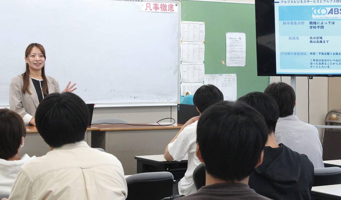 本校では就職のためのテクニックだけではなく、日々の講義や学習で身につくコミュニケーション能力やプレゼンテーション能力に加え、企業が採用選考で特に重視する5つの基礎力(※)を意識した「キャリア教育」も同時に行っています。