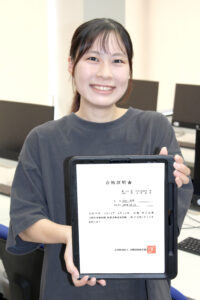 ビジネス科オフィス一般事務コース2年生 菅井彩花さんが秘書技能検定試験1級に合格しました。