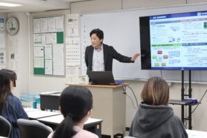 会社説明会では、各社の事業内容や業界の特長、働くうえでのやりがいや求める人物像について、詳しくお話しいただきました。学生たちは真剣な表情で耳を傾け、企業への理解を深めました。