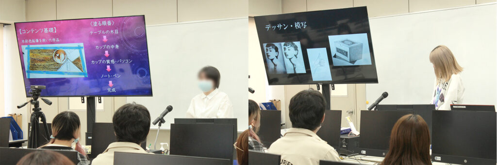 1年クリエイター科、デザイン科合同で課題の発表を実施しました。