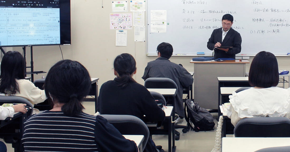 診療は医療機関、調剤は薬局という形で、投薬の役割分担が進み、院外に多くの調剤薬局が設置されています。このコースでは、登録販売者の資格取得を目指し、医薬品の知識、薬理学、調剤報酬請求事務を薬剤師の先生から学びます。