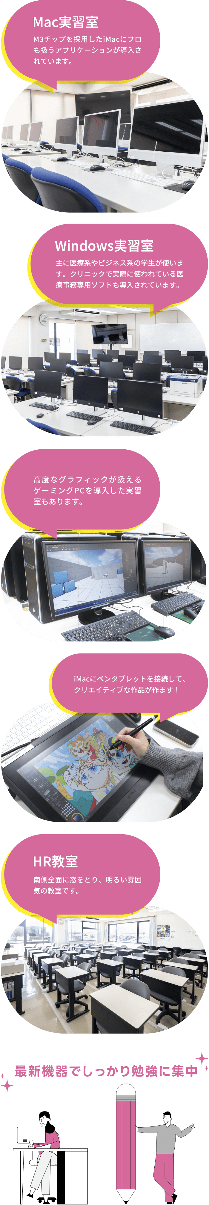 ハード・ソフト共に最新のものを用意し、自由に使用できます。